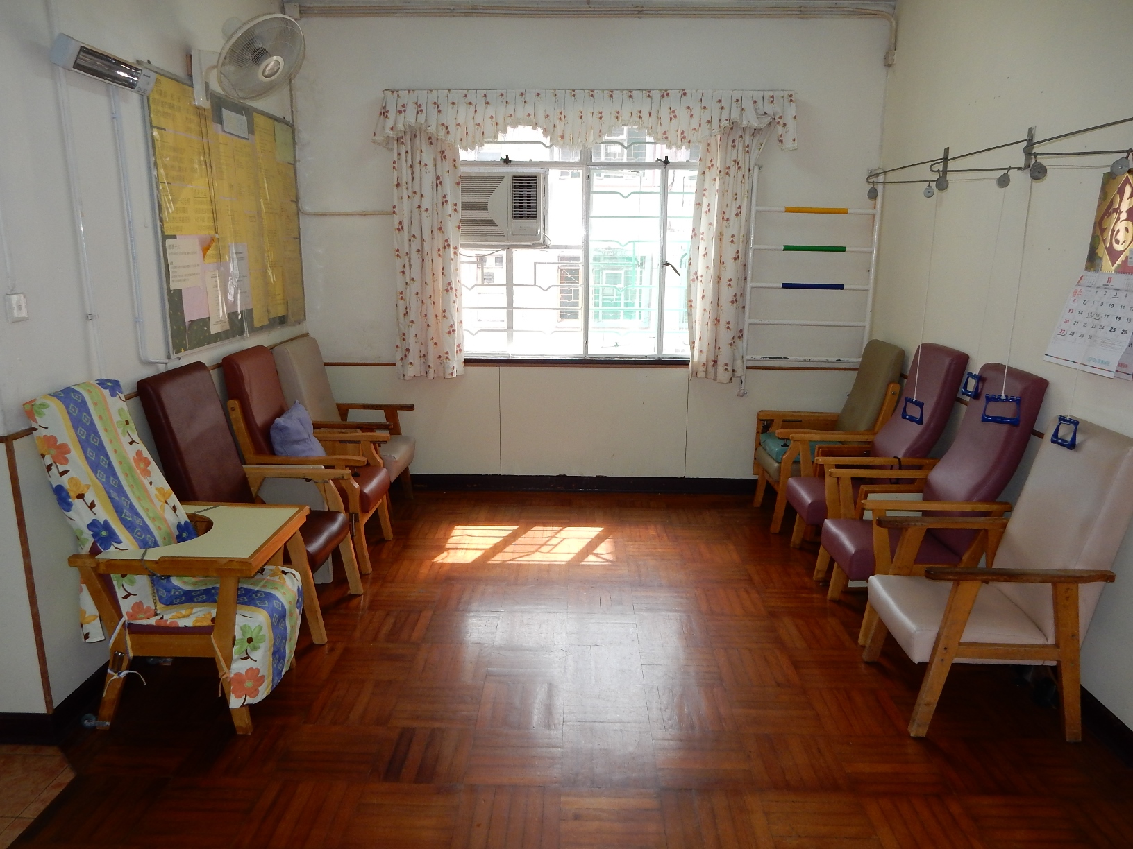 活動區, 冷氣, 露台, 血糖機, 電動床, 花園, 防滑扶手, 暖氣, 院車, 廚房, 客廳/飯廳, 辦公室, 氧氣機, 茶水間, 物理治療室/設施, 氣墊床, 手攪床, 吸痰機, 電視間, 助行器/拐杖, 輪椅 |