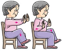5. 腰背略為離開椅背,兩臂屈曲,指尖向上,手肘提高至胸前,然後手肘向兩側張開再收回,共8次。