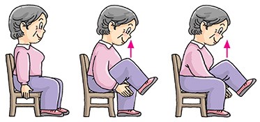1. 先提起右腿,然後放下;再提起左腿,然後放下,共提腿8次。